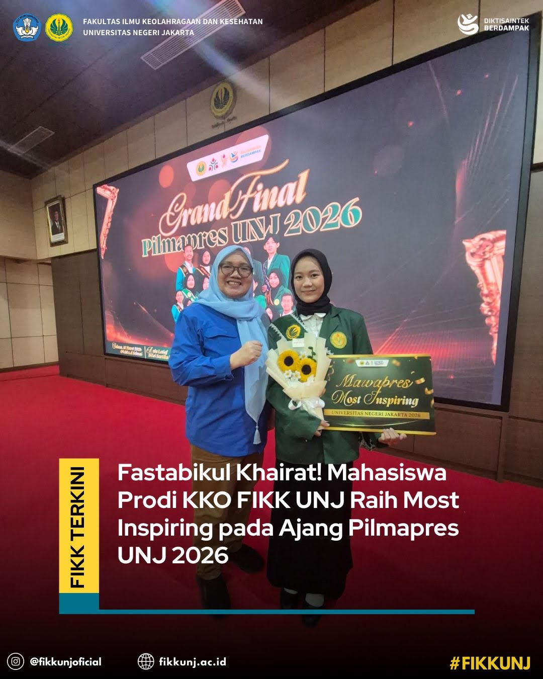 JAKARTA — Prestasi membanggakan kembali ditorehkan oleh mahasiswa Fakultas Ilmu Keolahragaan dan Kesehatan (FIKK) Universitas Negeri Jakarta (UNJ). Pada ajang bergengsi Pemilihan Mahasiswa Berprestasi (Pilmapres) tingkat universitas tahun 2026, Fastabikul Khairat, mahasiswa dari Program Studi Kepelatihan Olahraga (KKO), sukses meraih penghargaan sebagai Most Inspiring Student (Mahasiswa Paling Menginspirasi). Keberhasilannya ini menambah daftar panjang mahasiswa FIKK yang mampu bersinar tidak hanya di lapangan, tetapi juga di mimbar akademik.